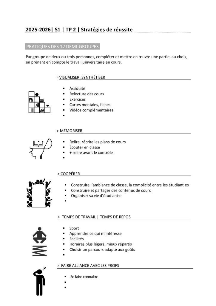 Les séances de TP sont obligatoires. Elles s’appuient sur trois conditions d’apprentissage, que nous développerons ensemble et individuellement :
